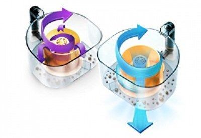 Пилосос Samsung VCC45W0S36/UK зроблений за інноваційною технологією Twin Chamber. Вона передбачає поділ внутрішнього резервуара на два відсіки - для пилу, і для сміття. Такий поділ допоможе ефективніше очистити простір, при цьому не забруднювати повітряний простір при виході повітря назовні. Також такий поділ не доводить дрібні частинки до фільтра, що захищає двигун, а це істотно впливає на тривалість його якісного функціонування.