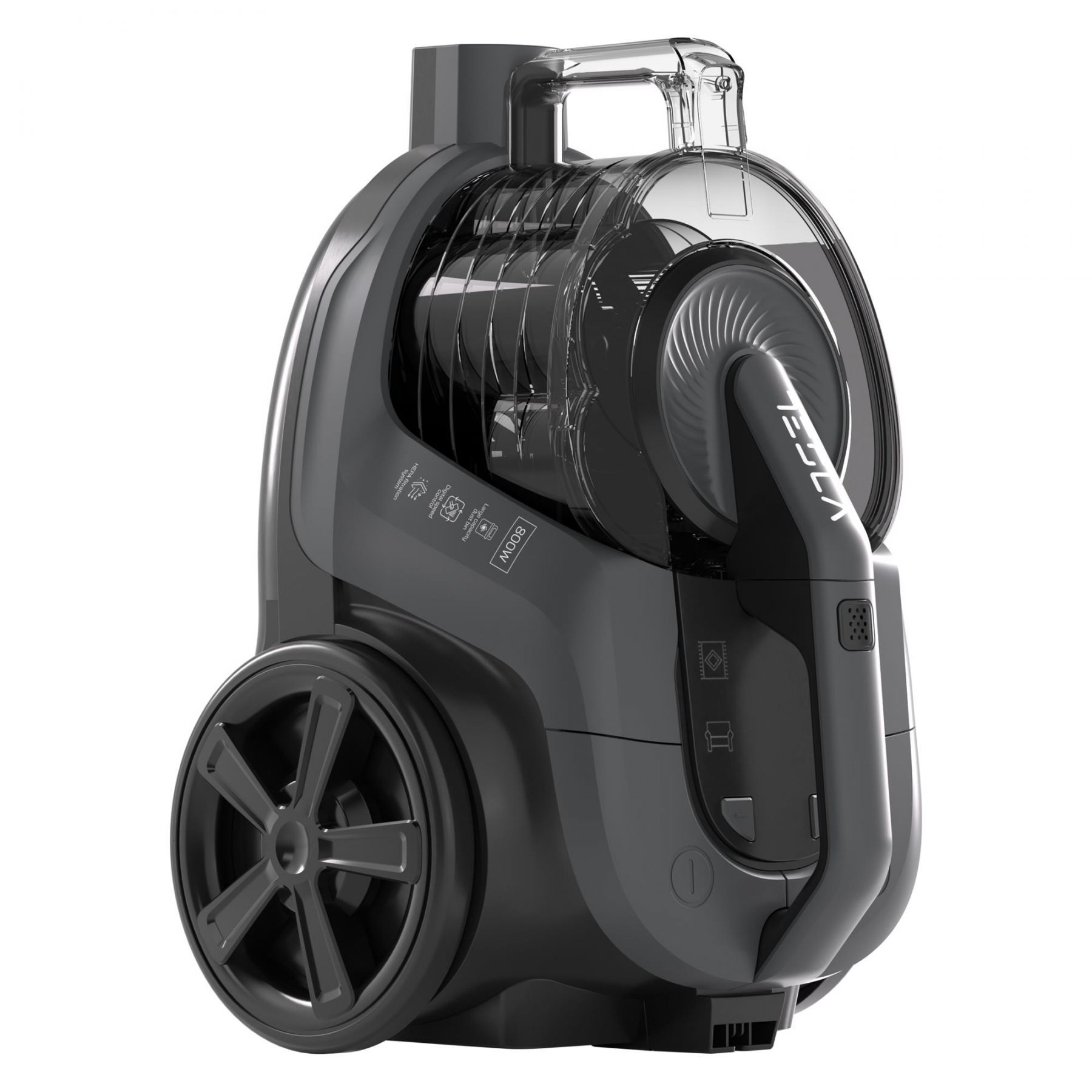 Замість традиційного мішка, пилосос оснащений прозорим пластиковим контейнером. Це дозволяє легко контролювати рівень заповнення та швидко очищати його. Достатньо просто витрусити сміття у відро, не контактуючи з пилом безпосередньо. Об’єм контейнера дозволяє проводити прибирання великих площ без частих зупинок.