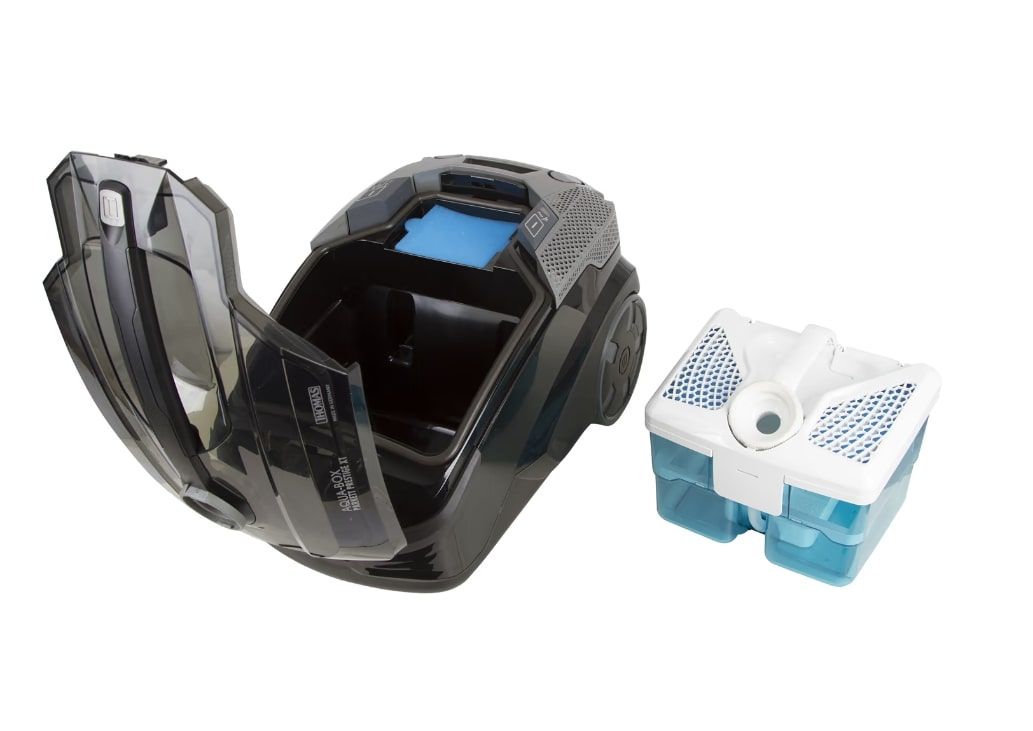 Зручний у роботі та обслуговуванні компактний пилосос з Аква фільтром. Висока потужність, продумана конструкція і набір спеціальних насадок перетворюють процес прибирання в найпростішу процедуру і дарують можливість насолоджуватися чистотою кімнати і повітрям в ній. THOMAS Parkett Prestige XT застосовує водяний фільтр для того, щоб весь пил і сміття гарантовано не покинули межі пилососа, тоді як HEPA фільтр очищає повітря від мікрочастинок і бактерій. Виробник продумав ситуацію, коли у вас не буде часу на заповнення Аква фільтра водою або просто не буде доступу до води, тому дана модель може працювати з мішковим HEPA пилозбірником. У комплектацію пилососа входить величезна кількість насадок, включаючи насадки для прибирання твердих покриттів, килимів і оббивки. Передбачена турбо-щітка для чищення килимів з глибоким ворсом, дві щітки різної ширини з шлангами для подачі миючого засобу, а також подовжена щілинна насадка. Разом з пилососом йде телескопічна трубка з якісної сталі, завдяки якій можна дотягнуться до найвіддаленіших предметів і заощадити місце при зберіганні. Шланг пилососа вільно обертається на 360 градусів, а завдяки переднім коліщаткам з ефективною конструкцією пилосос легко курсує навколо меблів і кутів кімнати.
