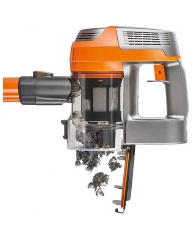 Головний вузол пилососа поєднує невеликий моторчик, акумулятор, контейнер для сміття та фільтри. У корпусі виділено ручку з кнопкою, при натисканні на яку прилад втягує пил. Завжди можна встановити потрібну насадку. Всі вони надійно фіксуються, не можуть від'єднатися у процесі збирання. Можна пилососити без штанги, приєднавши безпосередньо до приладу насадку "3 в одному".