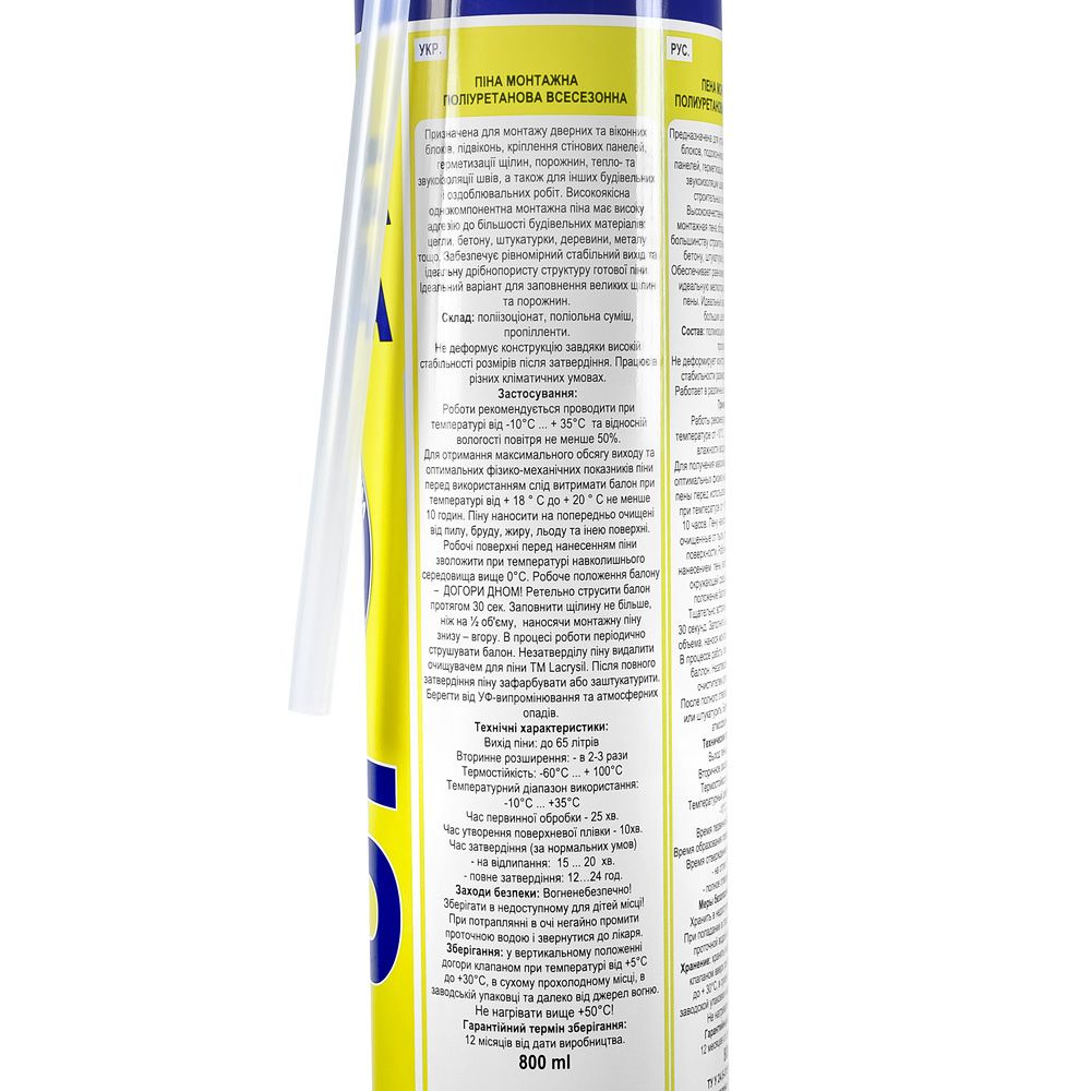 Піна монтажна Lacrysil "65" побутова поліуретанова, 800 мл, бежевий, (ручна) (110702)