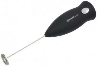 Ручний спінювач для молока First FA-5293 має м"яку прогумовану оболонку, яка відмінно прилипає до руки. Наконечник виконаний з нержавіючої сталі. Живлення здійснюється від 2 батарейок типу АА (у комплект не входять).