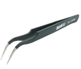 Пінцет вигнутий BAKU A8 7 Sa U.R.ESD з чорним антистатичним покриттям – це компактний ручний інструмент, призначений для підбирання дрібних предметів, які неможливо чи небезпечно брати пальцями. Складається із двох з’єднаних разом з одного боку важелів, вільні кінці яких при натисканні прикладаються один до одного. Інструмент використовується як кліщі, які здатні ефективно захоплювати мініатюрні предмети, утримуючи їх з великим зусиллям, не дозволяючи випасти. Цей інструмент знайшов широке застосування у різних сферах побутового життя, є невід’ємною частиною професійного оснащення.