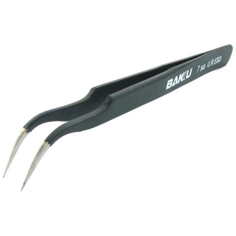 Пінцет вигнутий Baku A8 7 Sa U.R.ESD з чорним антистатичним покриттям (A15758)