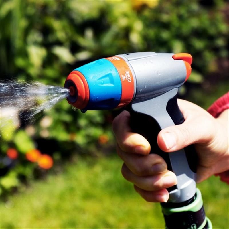 Є можливість зафіксувати кнопку увімкнення, полегшує напругу на руку в процесі поливу. Такий пістолет прискорить процес поливу садових рослин, допоможе під силою напору змити навіть скам’янілий бруд із садового інвентарю й допоможе впоратися з побутовими завданнями на дачній ділянці або в саду.