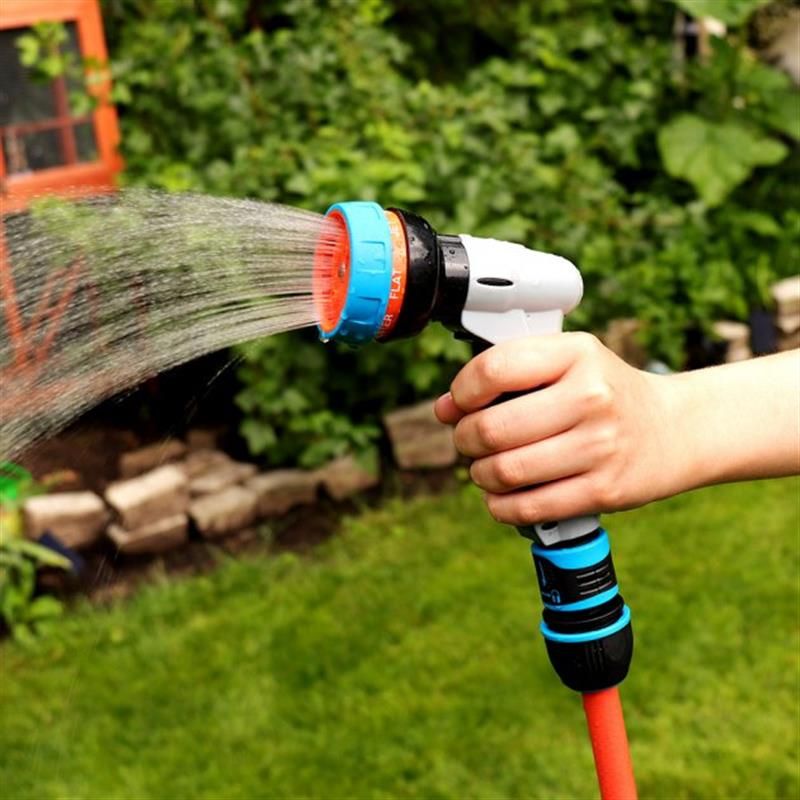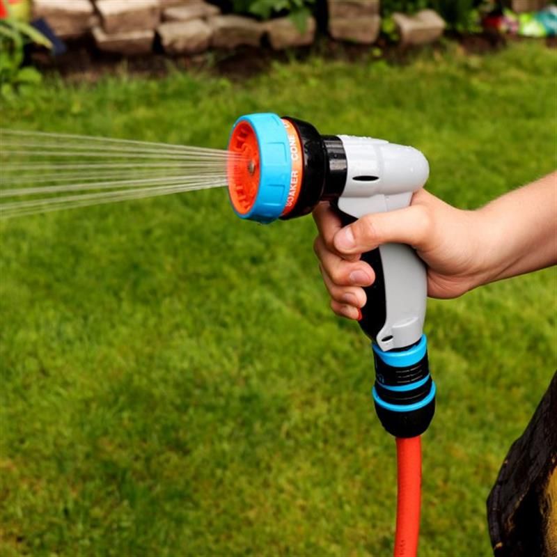 Пістолет для поливу легко регулює подавання води із 7 типами струменя: від точкового струменя до великого розпилення, що дає змогу виконувати різні типи робіт: від поливу до збирання. Є можливість зафіксувати кнопку увімкнення, полегшує напругу на руку в процесі поливу. Прискорює процес поливу садових рослин, допомагає силою напору змити навіть скам’янілий бруд із садового інвентарю й допомагає впоратися з побутовими завданнями на дачній ділянці, у саду.