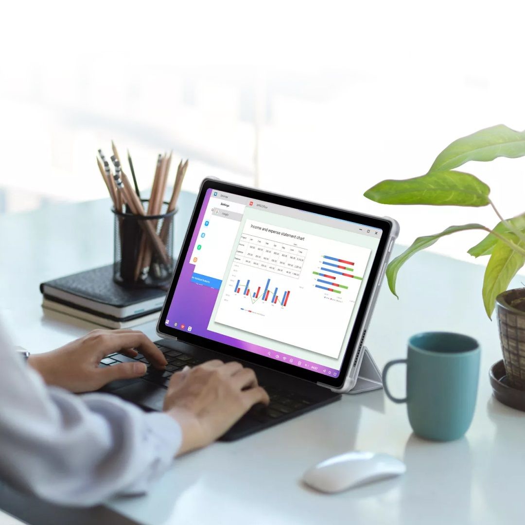 Виробник перетворив планшет Oscal Pad 15 на міні-комп'ютер, оснастивши його режимом ПК. Тепер можна відкривати кілька вікон одночасно, працюючи у програмі та переглядаючи веб-сторінки або здійснюючи відеодзвінки. Це підвищує вашу мобільність у рази. Якщо вам часто доводиться працювати за планшетом, підключайте до нього бездротову мишу і клавіатуру. Різниці з ПК ви практично не відчуєте.