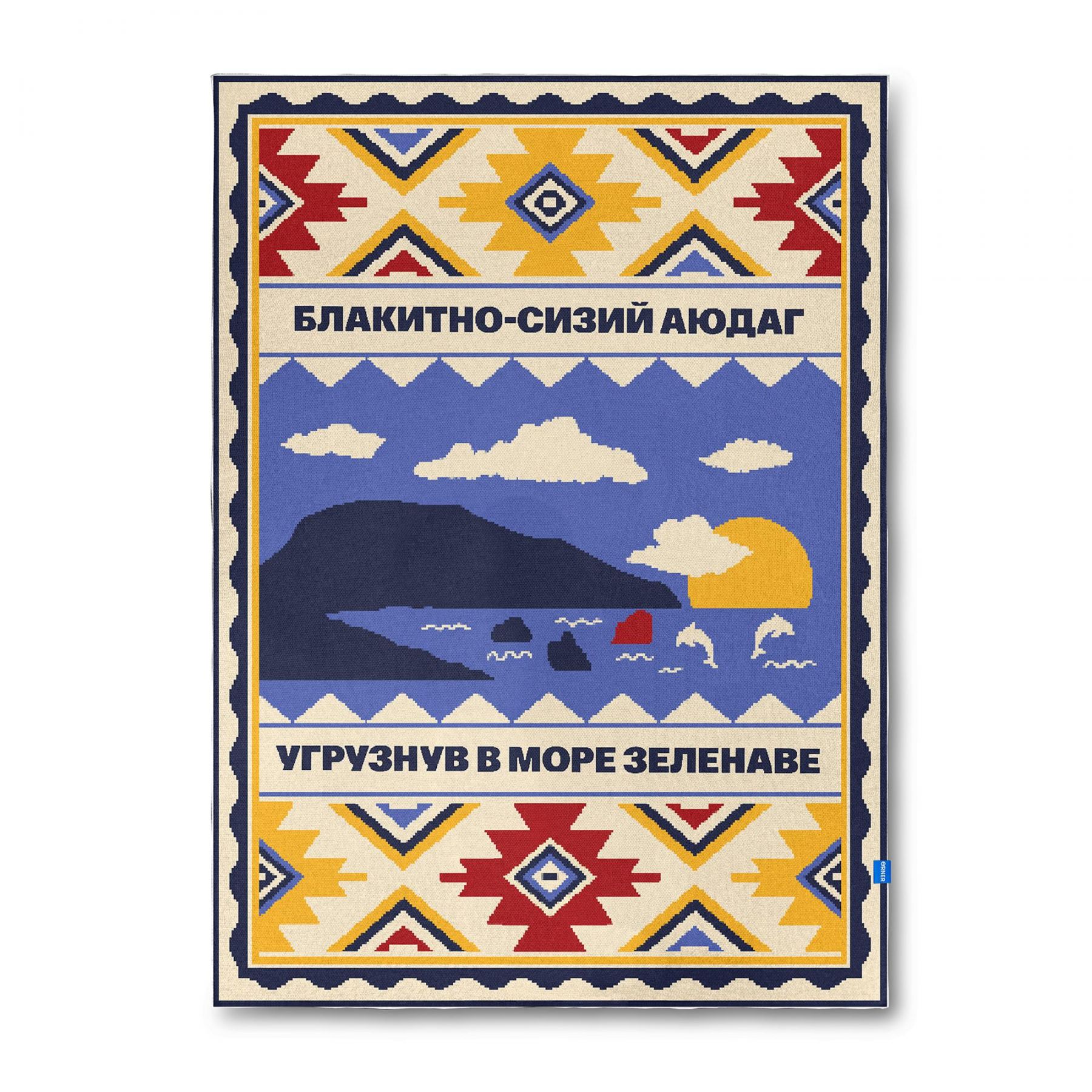 Ілюстрація пледа поєднує традиційні для цих регіонів орнаменти та один із найбільш впізнаваних природних туристичних об'єктів Криму — гору Аюдаг. А ще плед містить цитату українського письменника Валер’яна Поліщука, яка ідеально передає дух цього місця.