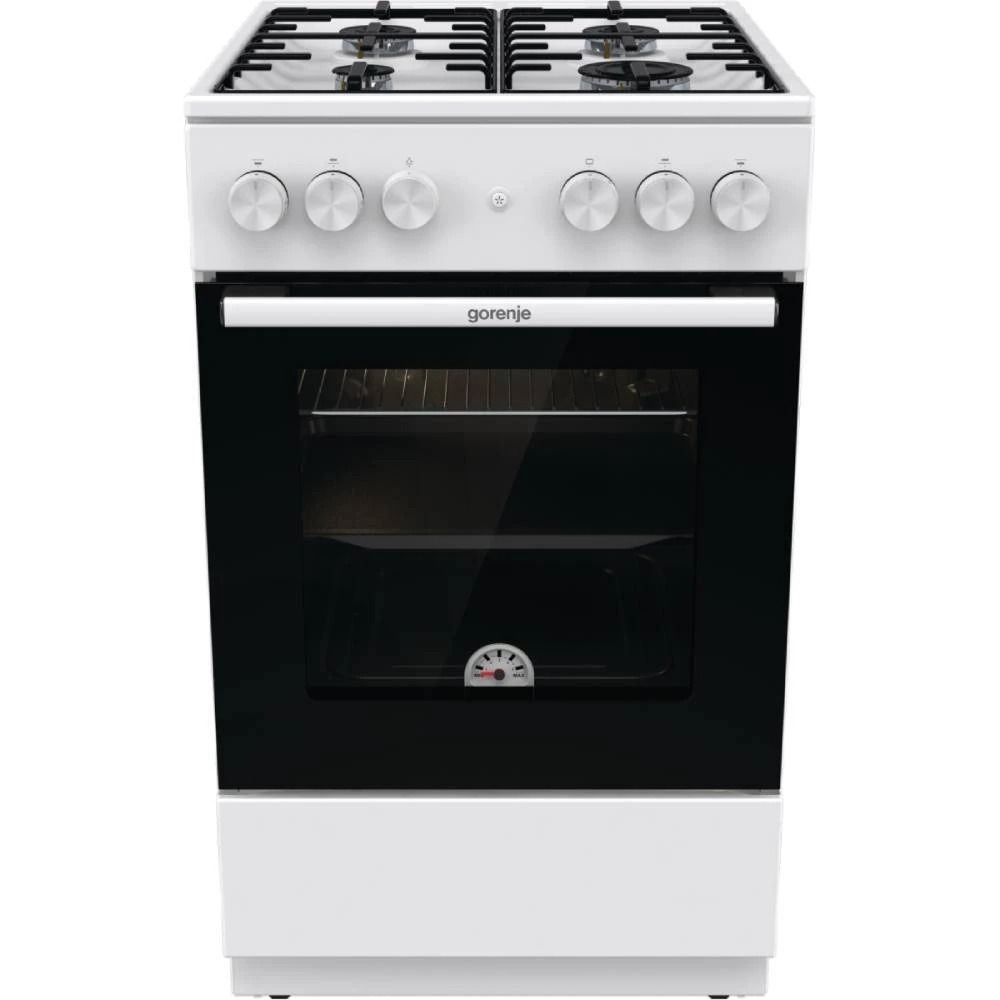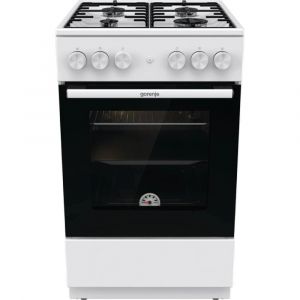 Газова плита GG5A12WH. Матеріал дверцят – скло, а матеріал панелі управління – фарбована сталь. Корисний об'єм плити складає 70л, а корисний об'єм становить 1,260 см2. Дана модель має ергономічні перемикачі. Також плита у своїй комплектації має наступне додаткове обладнання: Рельєфні спрямовуючі, мілке емальоване деко та решітку. Дана модель має подвійні скляні дверцята, Compact Door, що робить плиту безпечною у використанні.