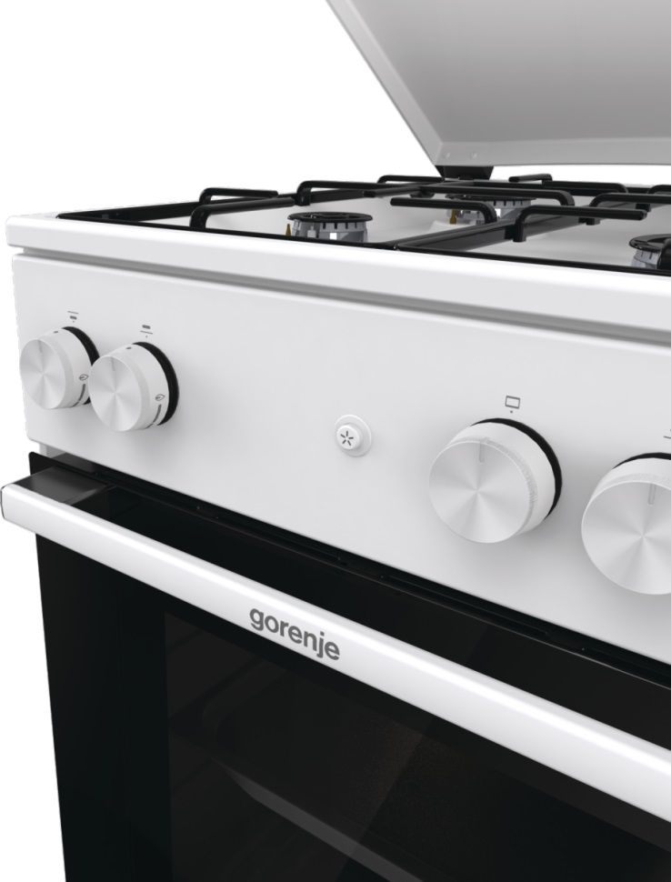 Газова плита GG5A14WJ. Матеріал дверцят – скло, а матеріал панелі управління – фарбована сталь. Корисний об’єм плити складає 70л. Дана модель має ергономічні перемикачі. Також плита у своїй комплектації має наступне додаткове обладнання: Рельєфні спрямовувачі, мілке емальоване деко та решітку. Дана модель має подвійні скляні дверцята, Compact Door, що робить плиту безпечною у використанні.