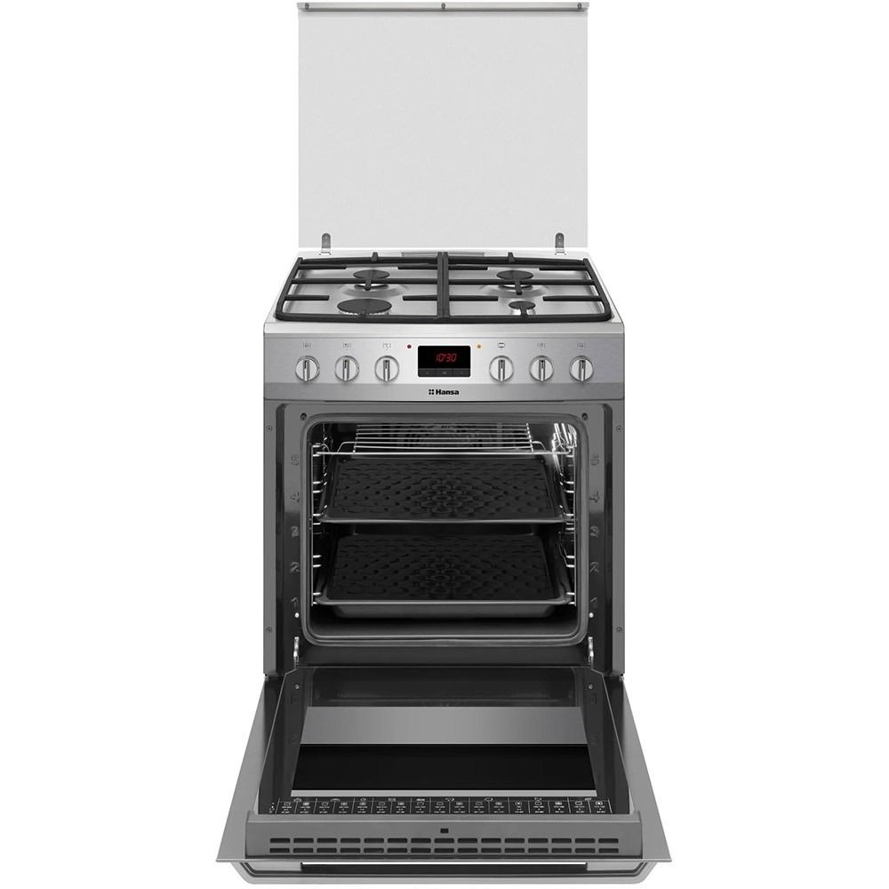 Плита Hansa FCMX69235 оснащена варильною поверхнею з нержавіючої сталі, на якій розміщено чотири класичні газові конфорки. Виробник подбав про чавунні ґрати, які відрізняються більш високою стійкістю та надійністю. Для зручності експлуатації виробником передбачена функція автозапалювання, що позбавляє необхідності постійно тримати під рукою сірники або запальничку.