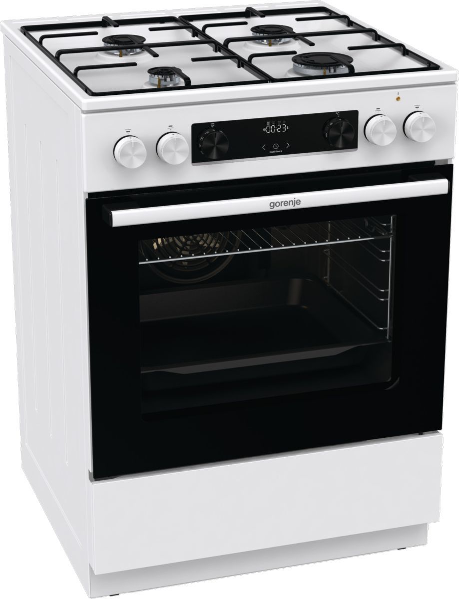 Комбінована кухонна плита GKS6C70WJ. Характерна заокруглена форма — одна з основних переваг духових шаф Gorenje. Створена за подобою традиційної дров’яної печі, така духова шафа забезпечує вільну циркуляцію гарячого повітря. Страва прогрівається рівномірно й з усіх боків, завдяки чому виходить ідеальною: хрусткою зовні та соковитою всередині.
