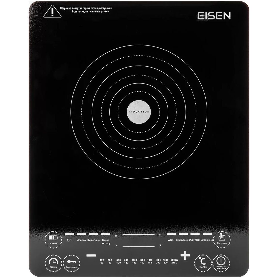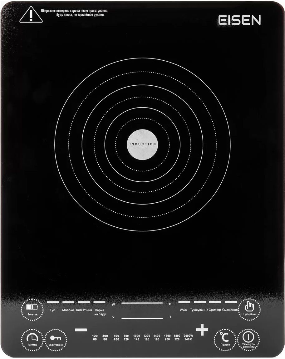 Модель EISEN EIP-237S Slim оснащена режимом автоматичного виявлення посуду та таймером до 240 хвилин. Також є функція “Блокування від дітей”. Варильна поверхня з легкістю блокується натисканням на символ замочка.