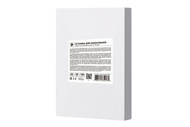 Плівка для ламінування 2E (2E-FILM-A5-080G), A5, глянцева, 80мк, 100 шт