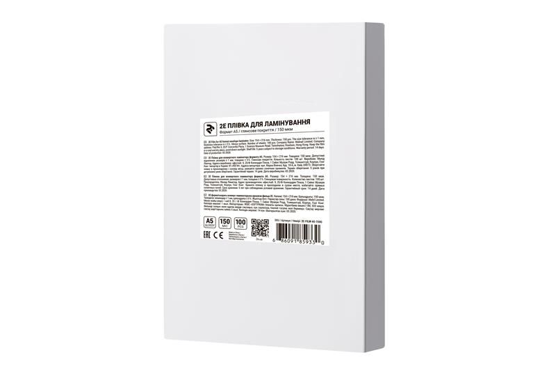 Плівка для ламінування 2E (2E-FILM-A5-150G), A5, глянцева, 150мк, 100 шт