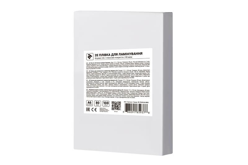 Плівка для ламінування 2E (2E-FILM-A6-080G), A6, глянцева, 80мк, 100 шт