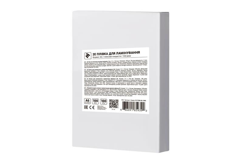 Плівка для ламінування 2E (2E-FILM-A6-100G), A6, глянцева, 100мк, 100 шт