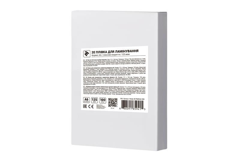 Плівка для ламінування 2E (2E-FILM-A6-125G), A6, глянцева, 125мк, 100 шт