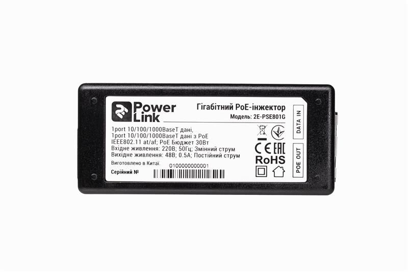 PoE-інжектор 2E PowerLink PSE801G (1xGE, 1xGE PoE, 802.3af/at (до 30 Вт))
