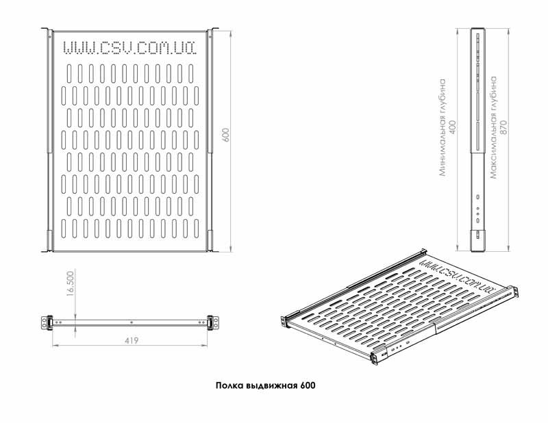 Увага! Частково сумісні з шафами серії CSV Wallmount. Полиці з рейками глибиною 400мм. сумісні з шафами глибиною 580мм.