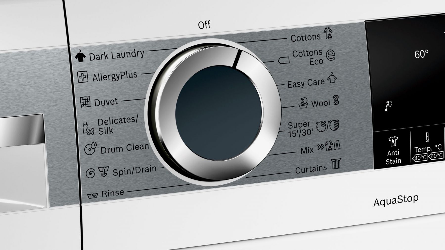 Немає двох однакових плям. Але вибір правильної програми прання для кожної з них може бути заплутаним і призвести до не найкращих результатів прання. Пральні машини Bosch з опцією АнтиСтейн допомагають вам щоразу надійно виводити плями. Опція AntiStain легко виводить до 4 найбільш стійких плям від олії/жиру, чаю, косметики та крові. Перед запуском обраної програми пральна машина автоматично регулює температуру, рух барабана та час замочування відповідно до виявлених плям. Отже, незалежно від того, яка пляма є на вашому одязі, АнтиСтейн допомагає легко отримати ідеальні результати прання. Повністю автоматично.