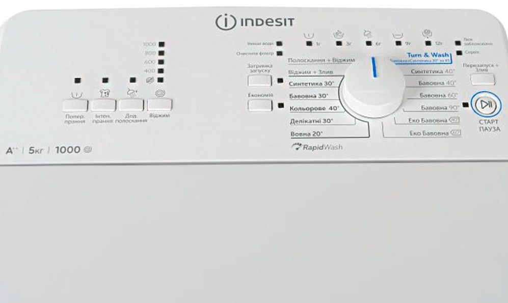 За допомогою цієї функції можна запустити цикл прання, навіть коли пральна машина вимкнена, без необхідності вмикати пральну машину за допомогою кнопки вкл./викл. Лише натиснувши одну кнопку Turn&Wash Ви зможете випрати білизну при температурі 30°C, максимальній швидкості віджимання 1000 об/хв., максимальному завантаженні 4 кг білизну з бавовни або синтетики, всього за 45 хвилин. Це дає змогу, за потреби, прати білизну щодня.