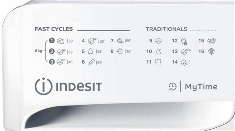 Нова пральна машина MyTime пропонує кілька швидких варіантів програм прання тривалістю менше 1 год: Бавовна 30 ° C (30'), Синтетика (59'), Шовк & Делікатне (59'), Шерсть (59'), Експрес 15 хвилин.