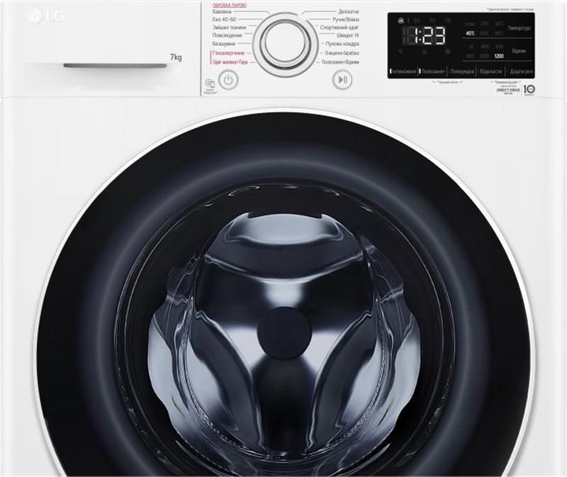 *Протестовано Intertek у березні 2019 року. Була використана програма прання «Бавовна» із завантаженням 2 кг спідньої білизни, як порівняти з результатами, отриманими на звичайній програмі прання «Бавовна» на звичайній пральній машині LG (моделі F4V9RWP2W та FC1450S2W). Результати можуть відрізнятися залежно від типу білизни та інших умов. AI DD працює на 3 програмах прання. (Бавовна, Змішані тканини, Повсякденне прання).