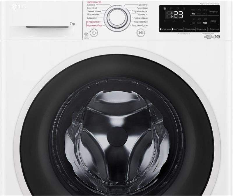 *Протестовано Intertek у березні 2019 року. Була використана програма прання «Бавовна» із завантаженням 2 кг спідньої білизни, як порівняти з результатами, отриманими на звичайній програмі прання «Бавовна» на звичайній пральній машині LG (моделі F4V9RWP2W та FC1450S2W). Результати можуть відрізнятися залежно від типу білизни та інших умов. AI DD працює на 3 програмах прання. (Бавовна, Змішані тканини, Повсякденне прання).