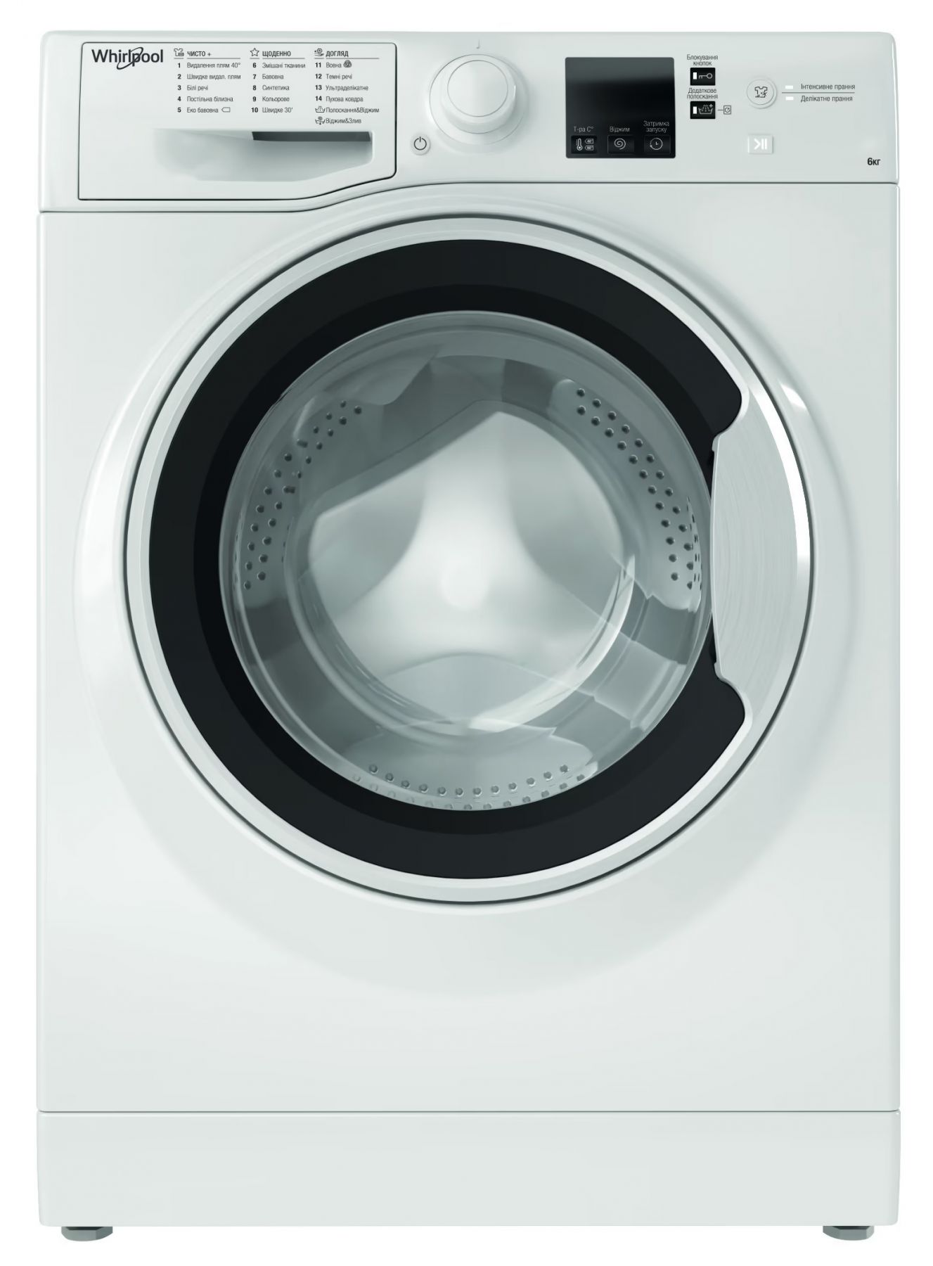 Вузька пральна машина Whirlpool WRBSS 6239 W UA з фронтальним завантаженням - 6 кг. Клас енергоспоживання A+++. Швидкий та енергоефективний віджим зі швидкістю 1200 об./хв. Спеціальні програми в моделі WRBSS 6239 W UA: пух/перо, ковдра, швидка 30-хвилинна програма, біла білизна, темна білизна, кольорова білизна. Додаткові функції: відкладений старт, додаткове полоскання, очищення, вибір температури прання і швидкості віджимання. Ця пральна машина Whirlpool оснащена системою блокування від дітей для запобігання випадкового використання цього приладу дітьми.