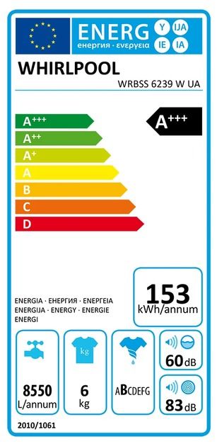Завдяки класу енергоспоживання A+++ пральна машина Whirlpool забезпечує ідеальні результати, але знижує споживання енергії.