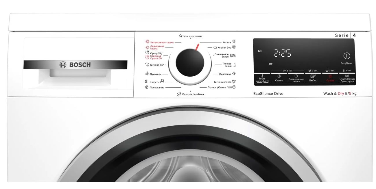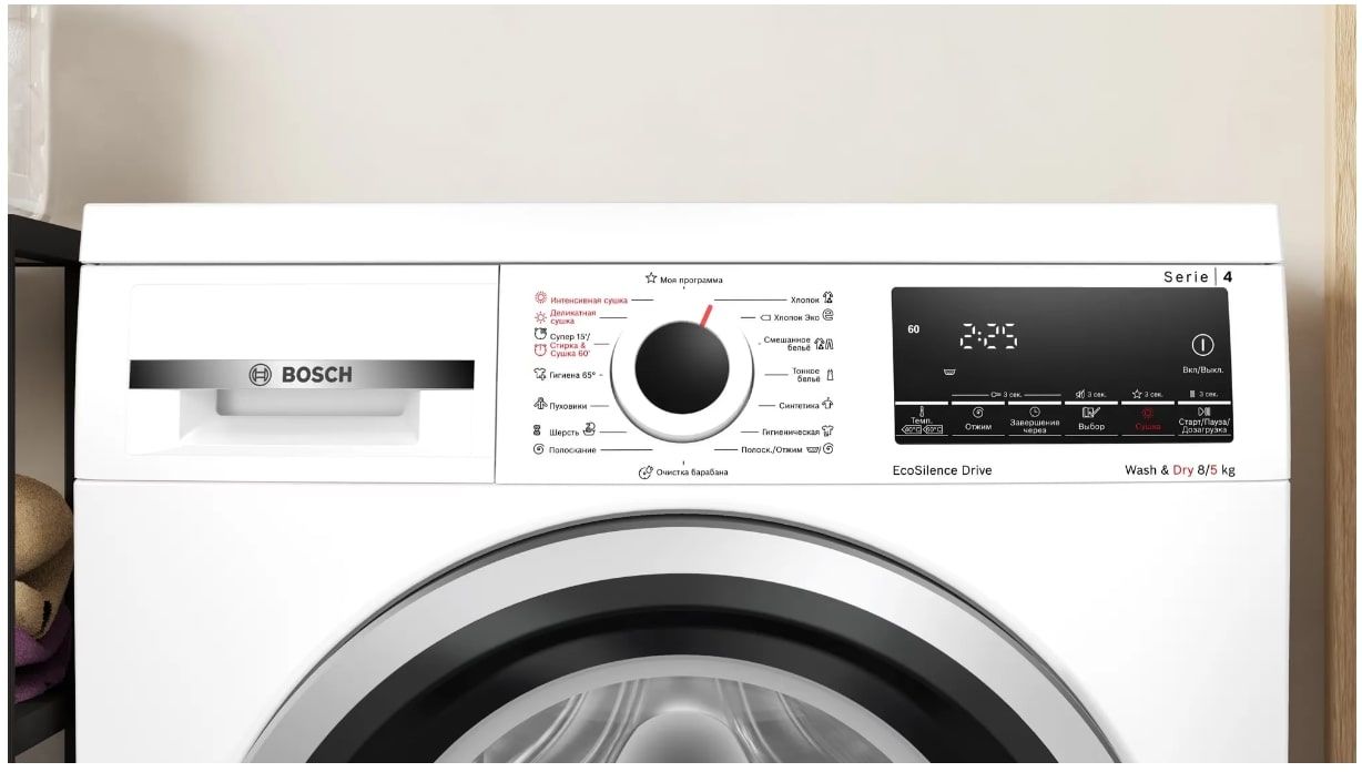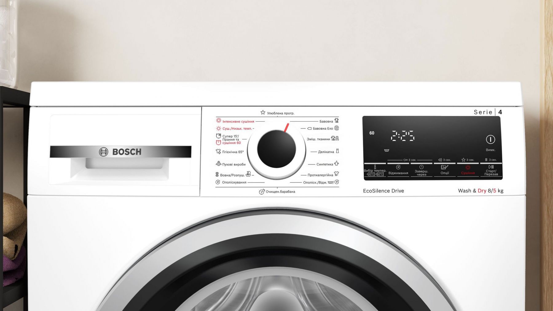 Прально-сушильна машина Bosch працює на прання від початку і до кінця. З програмою Wash&Dry 60 хв. ви зможете випрати до 2 кг слабо забруднених речей за 15 хвилин. Потім запуститься високотемпературна сушка, яка висушить речі за 45 хвилин. Так одна програма проведе повне прання - і всього за одну годину.