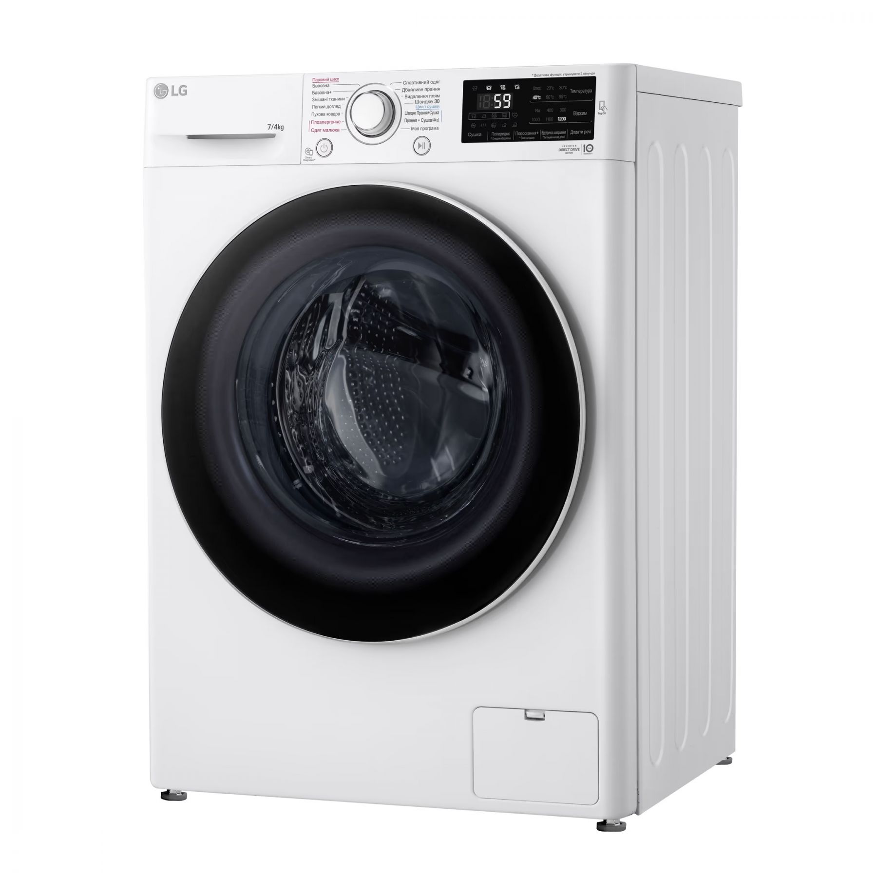 Додаткові програми:прання та сушка, сушка, прання парою, видалення плям, прання та сушка / сушка / прання парою / видалення плям