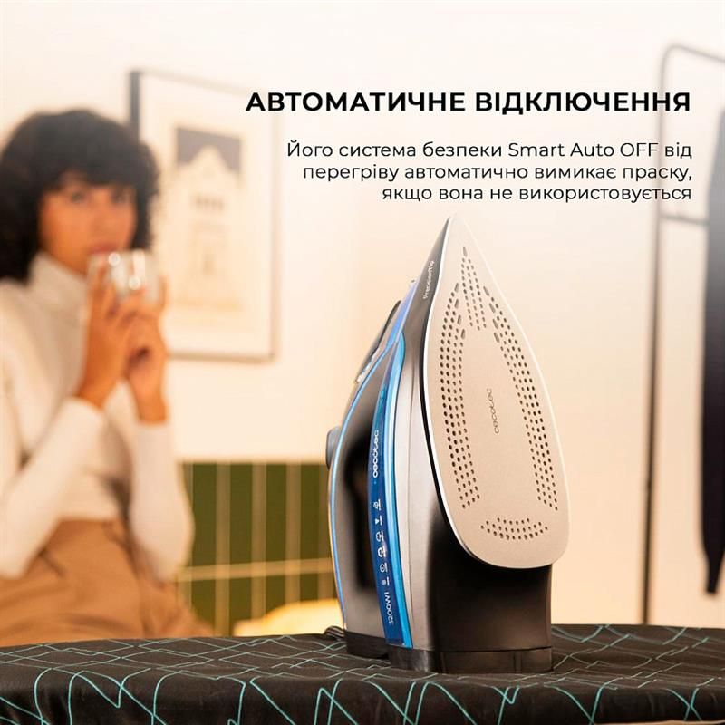 Система безпеки праски CECOTEC, Smart Auto OFF від перегріву автоматично вимикає праску, якщо вона не використовується та оберігає Вас від неприємних та небезпечних ситуацій.
