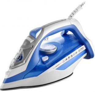 Система парової прасування відмінно продумана за рахунок декількох складових: резервуара для води (450 мл), перфорації в підошві для виходу струменів пари і регулятор інтенсивності його подачі. Використовуючи їх, ви зможете відпарювати речі горизонтально або вертикально постійним паром з силою 25 г /хв.