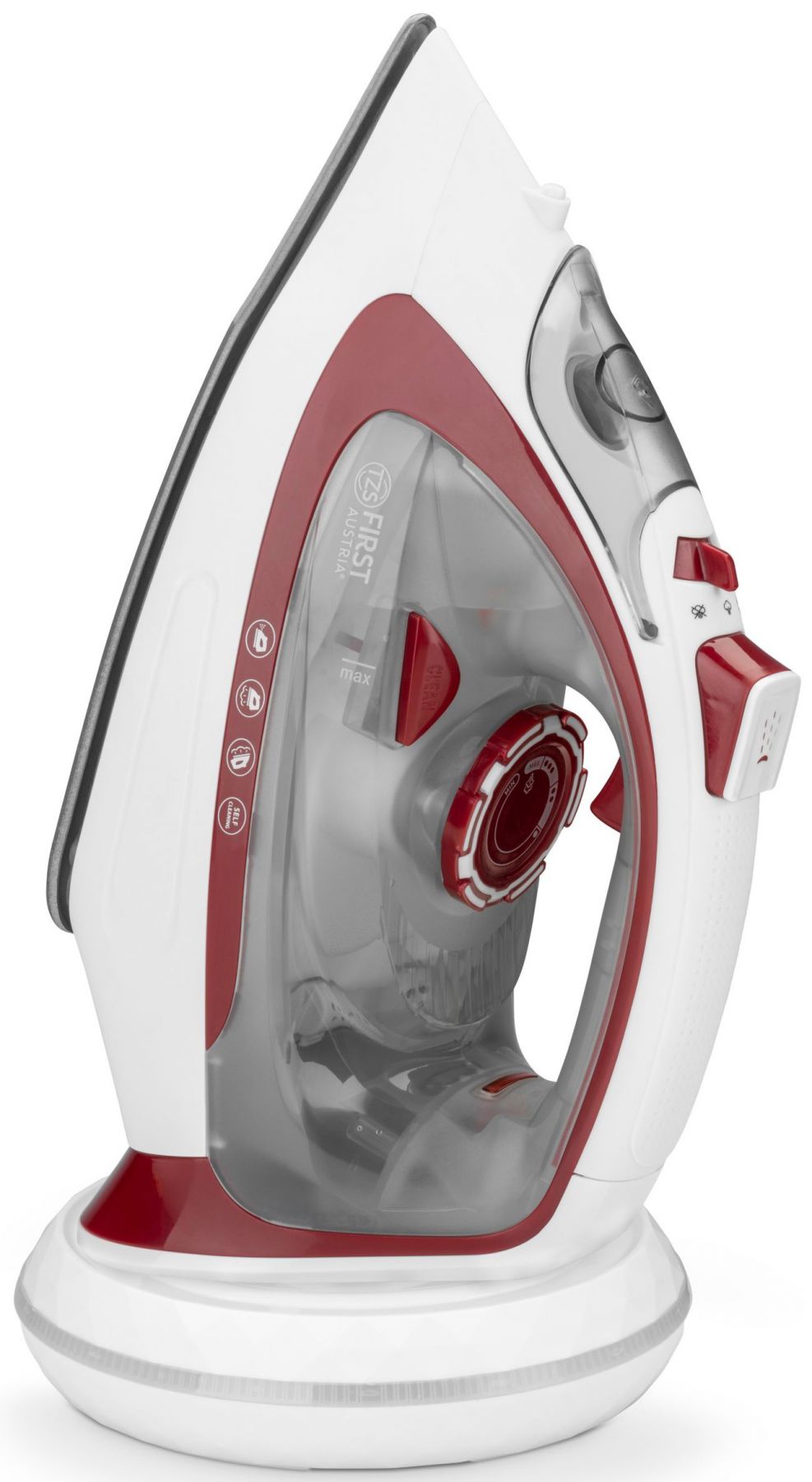 Праску можна використовувати як зазвичай на дошці для прасування або вертикально для розвішування одягу за допомогою парового шоку. Завдяки практичному механізму блокування базової станції праскою можна керувати за допомогою кабелю. Керамічна підошва з антипригарним покриттям дозволяє праску ковзати по будь-якому текстилю, не прилипаючи. Праска також самоочищається, має функцію «крапля-стоп» та функцію захисту від накипу.