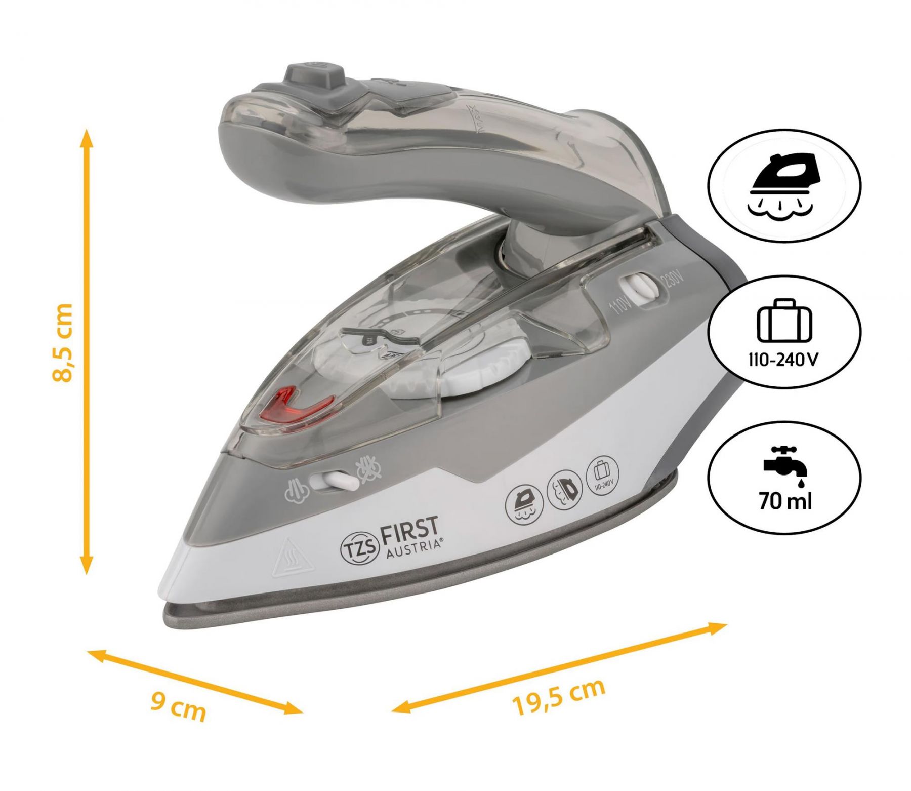 Дорожня праска TZS First Austria FA-5640-3 — це ідеальне рішення для тих, хто часто подорожує та цінує акуратний вигляд свого одягу. Ця компактна праска, яка важить всього 750 грамів, не займає багато місця у багажі завдяки складній ручці, що робить її максимально зручною для транспортування.