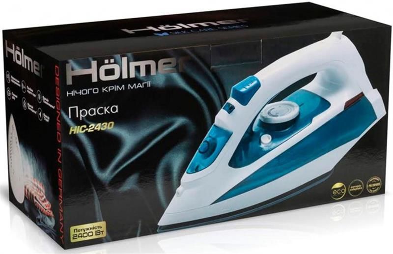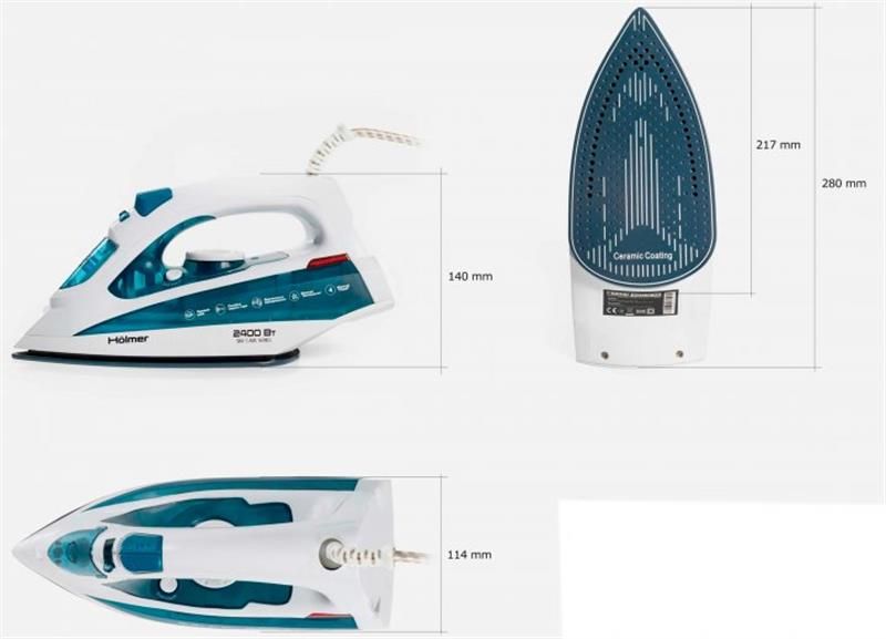 Праска Holmer HIC-2430 для сухого прасування і з парою, має потужність 2400 Вт (час нагріву max ~32 сек), паровий удар 120 г/хв, постійну подачу пари 30 г/хв. Керамічне покриття підошви забезпечує легке ковзання по тканинах різних типів, розгладжуючи навіть найскладніші ділянки.