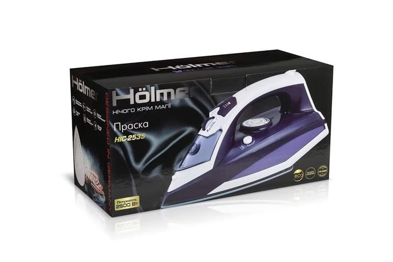 Праска Holmer HIC-2535 має стильний дизайн. Праска має потужність 2500 Вт, паровий удар 130 г/хв і постійну подачу пара 30 г/хв, а також керамічне покриття, забезпечить максимально комфортне прасування і допомагає розгладити навіть найскладніші складки. З функцією «Антікрапля» жодна крапля не потрапить на тканину. Функція «Вертикальний пар» дозволить з легкістю відпарювати делікатні тканини, наприклад штори або плаття.