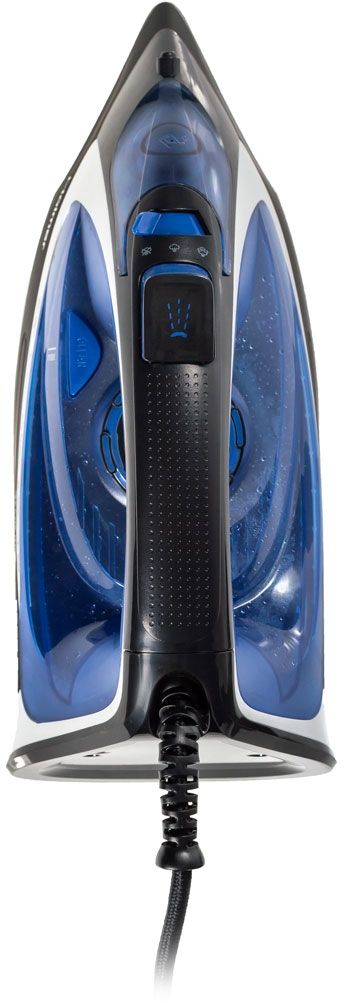 Диск регулятора температури та кнопки керування виготовлено із пластику. Зручне розташування кнопки парового удару під ручкою. На ручці праски нанесено рівномірний візерунок у вигляді невеликих круглих степсів. Зручне широке горлечко для заливання води з гумовим ущільнювачем.