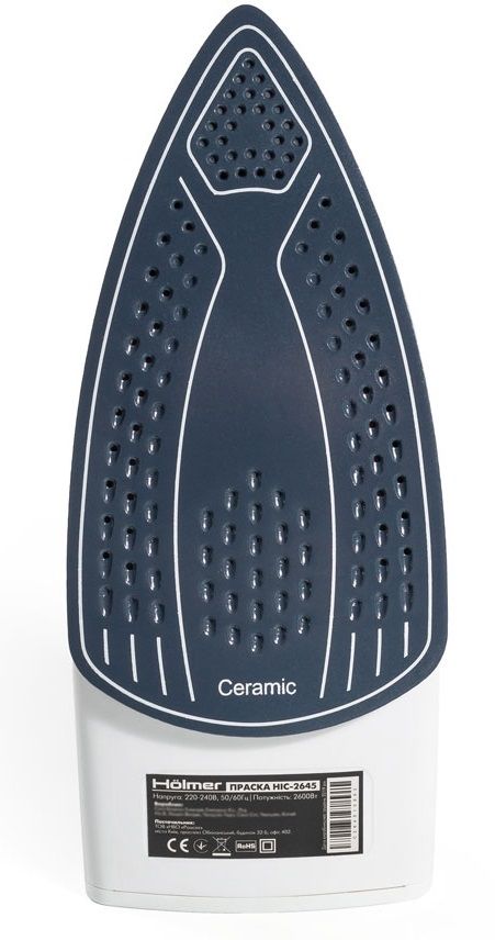 Праска Hölmer HIC-2645 для сухого прасування і з парою, має потужність 2600 Вт (час нагріву max ~ 30 сек), паровий удар 140 г/хв, постійну подачу пари 40 г/хв. Керамічна підошва забезпечує легке ковзання по тканинах різних типів, не створює складок, повністю розгладжує всі ділянки.