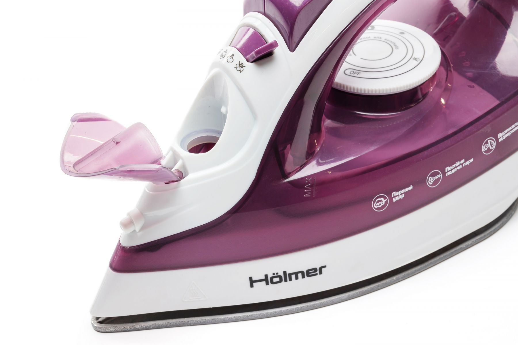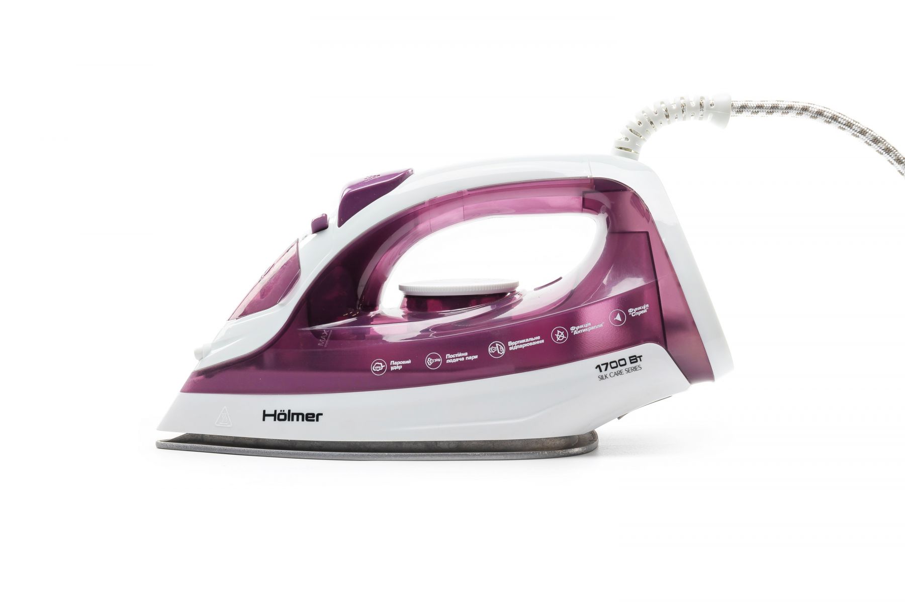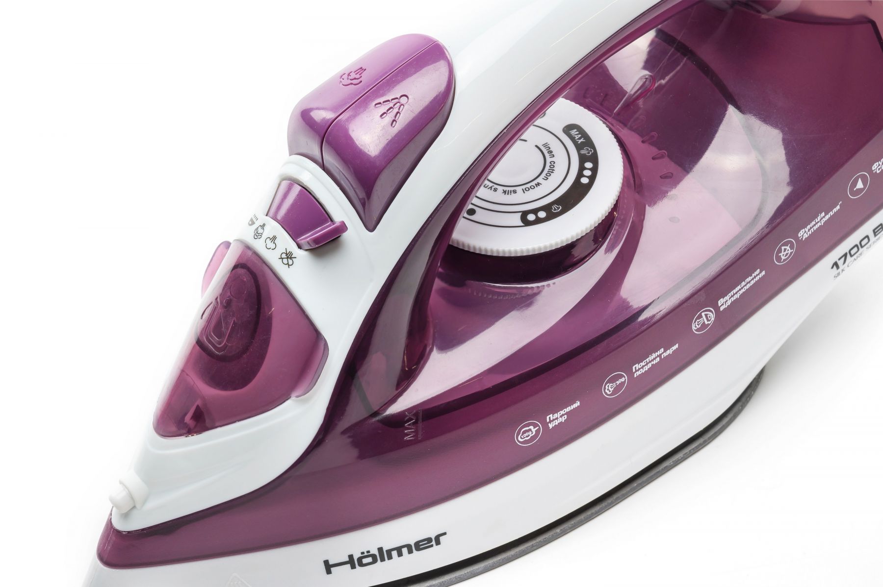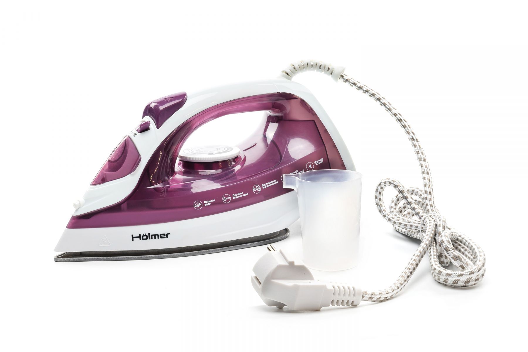 Праска Holmer HIT-2022 для сухого прасування і з парою, має потужність 1700 Вт (час нагріву max ~28 сек), паровий удар 100 г/хв, постійну подачу пари 30 г/хв. Тефлонове покриття підошви забезпечує легке ковзання тканин різних типів, розгладжуючи навіть найскладніші ділянки.