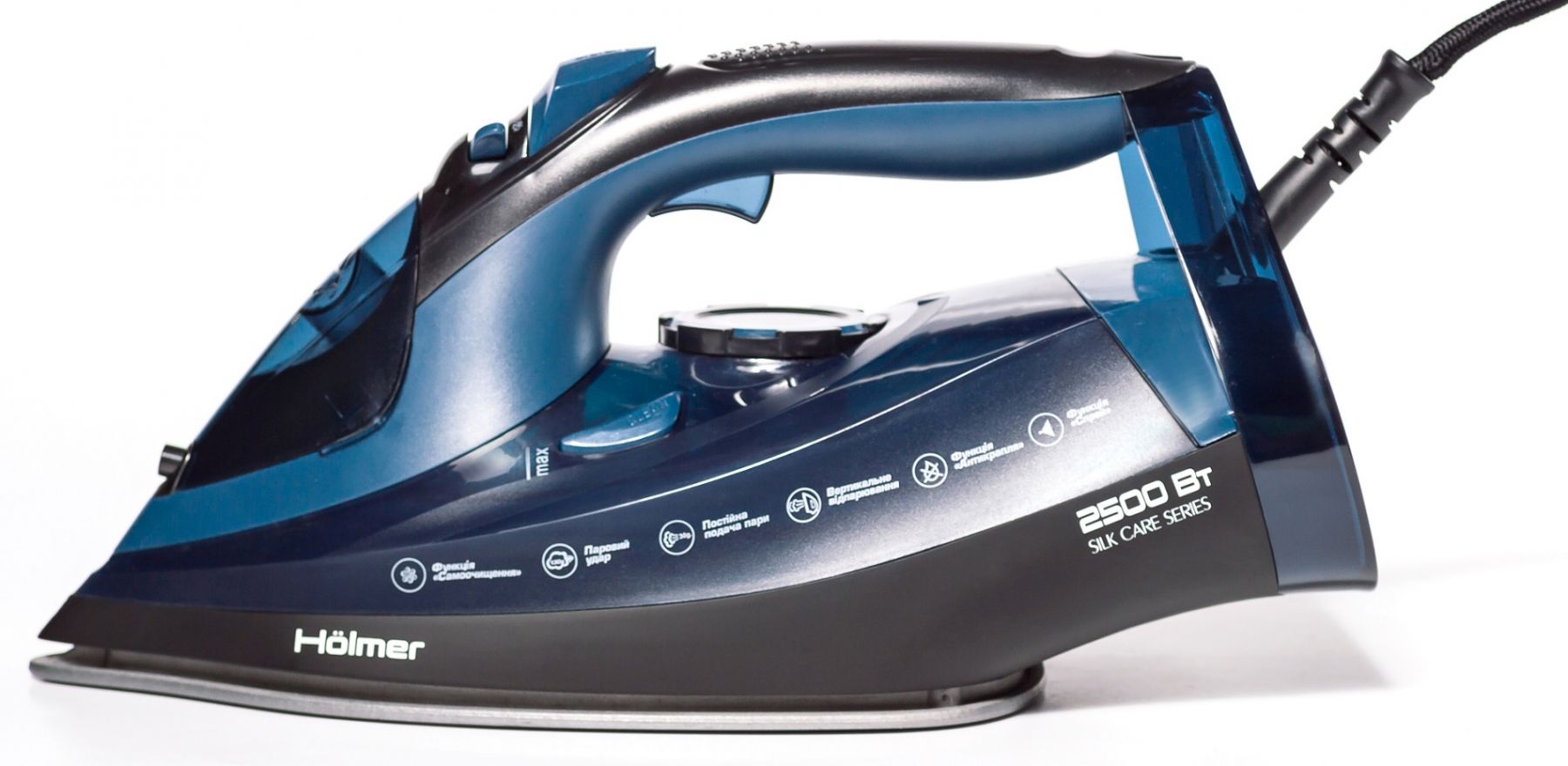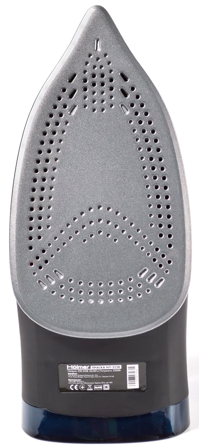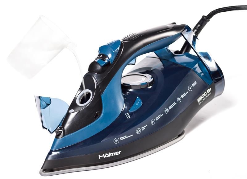 Праска Holmer HIT-2538 для сухого прасування і з парою, має потужність 2500 Вт (час нагріву max ~30 сек), паровий удар 130 г/хв, постійну подачу пари 30 г/хв. Тефлонове покриття підошви з невеликою фаскою по краю забезпечить легке ковзання по тканинах різних типів, не створює складок, повністю розгладжує всі ділянки.