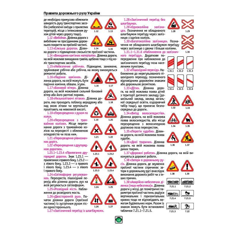 Кольорові ілюстрації, дорожні знаки та розмітку у тексті Правил
