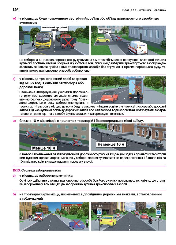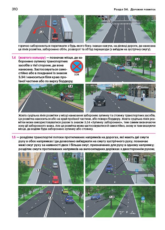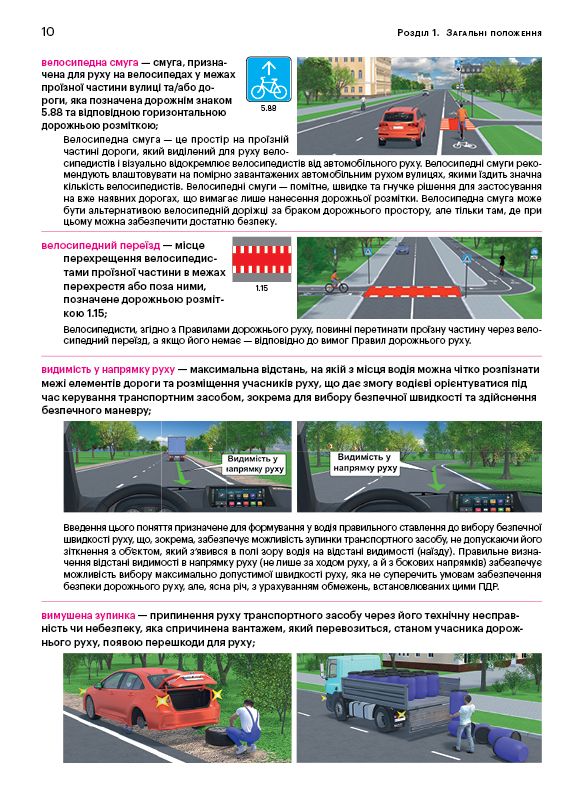 - Кольорові ілюстрації, дорожні знаки та розмітку у тексті Правил