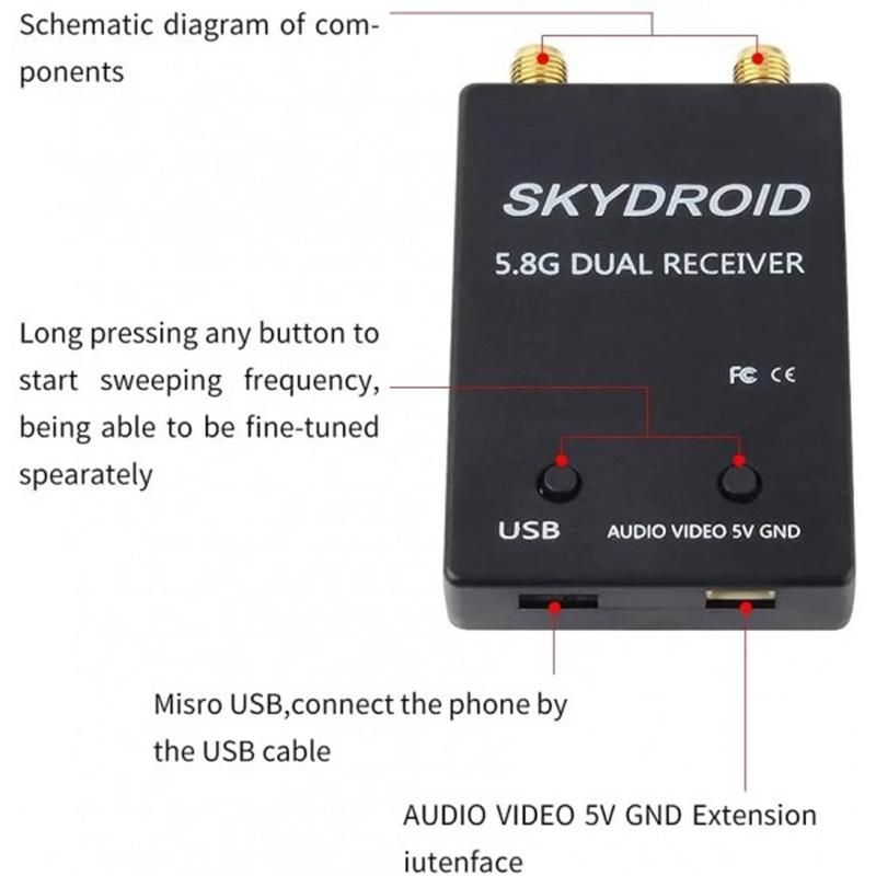 Приймач FPV радіо сигналу Skydroid 5.8G для Android Dual Black (1005005930052108DB)