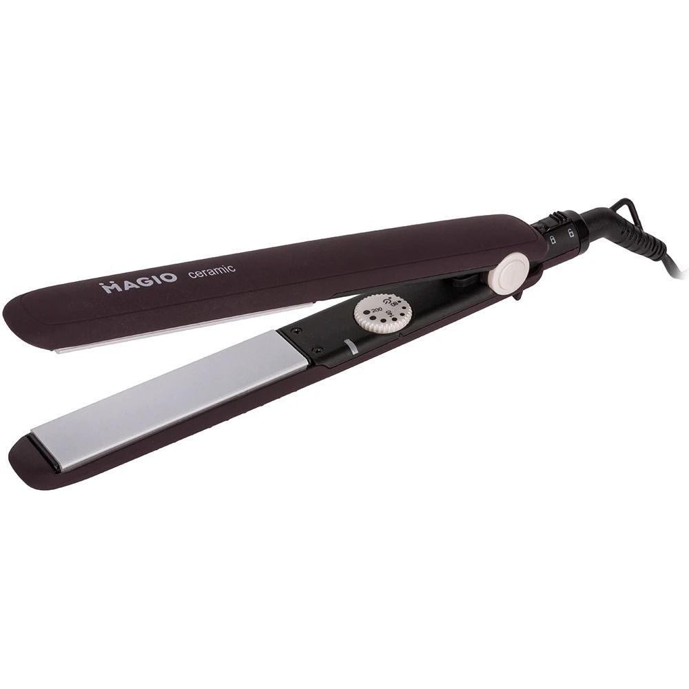 Щипці для волосся MG-578 від Magio потужністю 45 Вт із 7 температурними режимами та регульованим нагріванням від 80 до 200 °C, мають керамічне покриття нагрівальної поверхні, обладнані функцією блокування ручки та для зручності використання зроблені з петлею для підвішування.