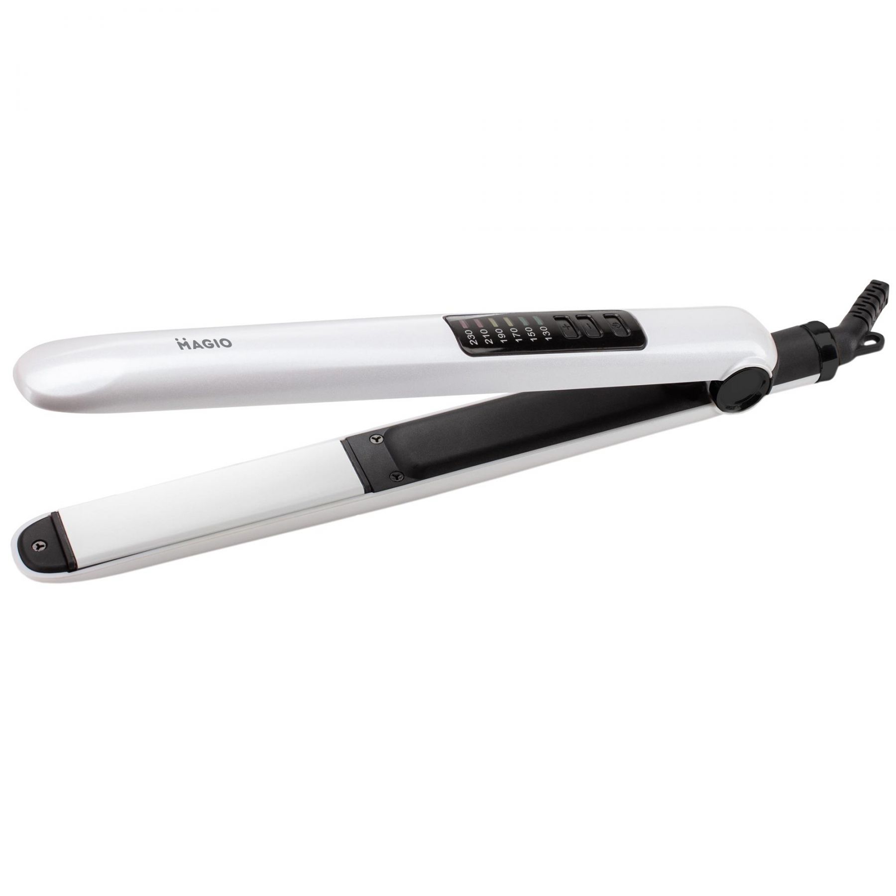 Випрямляч для волосся MG-586 має дві ключові особливості - це зручність і елегантність. Модель виконана в надзвичайно стильному корпусі і має легку вагу. Абсолютна простота - ключова особливість моделі. Матеріал поверхні робочих пластин - двошаровий кераміка, що впливає не тільки на кінцевий результат зачіски, але і на здоров’я волосся. Такий вид пластин завдає найменшої шкоди, швидко і рівномірно нагріваються, легко ковзають по волоссю і запобігають електризацію. Максимальна потужність приладу - 40 Вт, що сприяє швидкому нагріванню приладу. А за допомогою електронного типу управління, можна вибрати оптимальну температуру для різних типів волосся. Петелька для підвішування і блокування ручки створюють додаткову зручність при використанні. Вишенькою на торті є плаваюча пластина, яка максимально знижує ризик пошкодження волосся.
