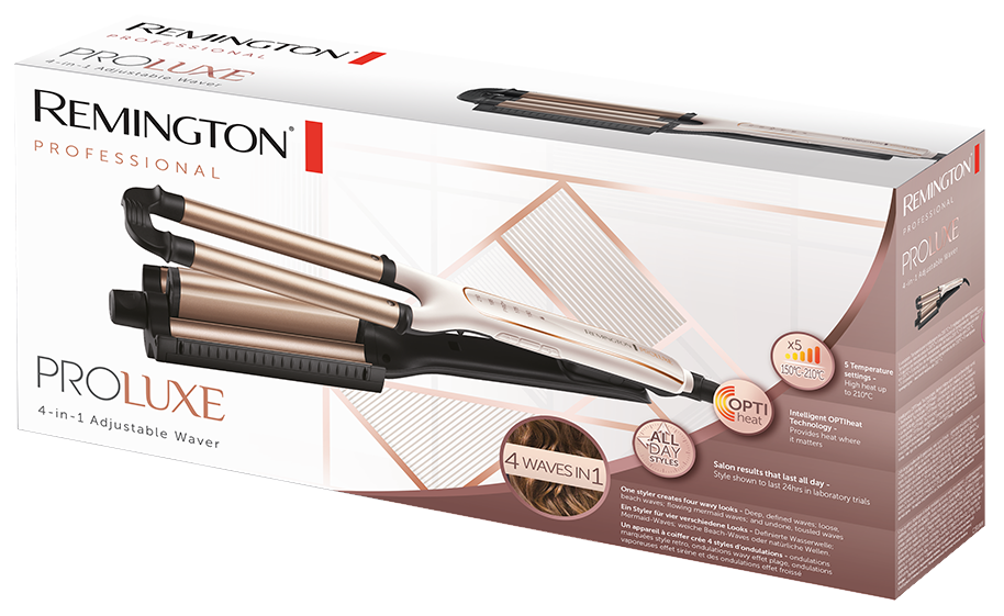 Регульований стайлер-вейвер PROluxe 4-в-1 дає вам свободу створювати 4 різних трендових хвилястих стилю укладання. Простий у використанні регульований перемикач легко змінює глибину підстави, щоб ви могли змінити свій зовнішній вигляд, а інтелектуальна технологія OPTIheat забезпечує нагрів там, де це важливо для 24-годинного стійкого стилю укладання*.