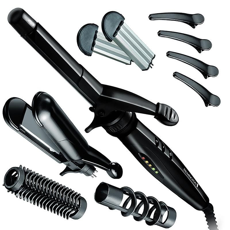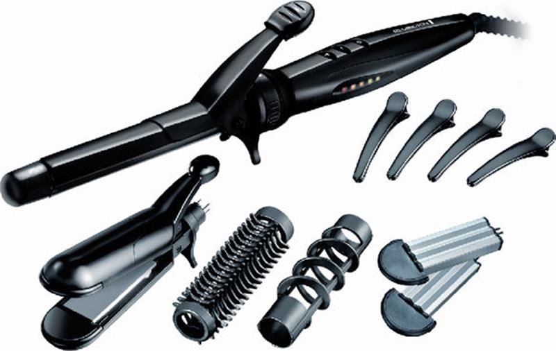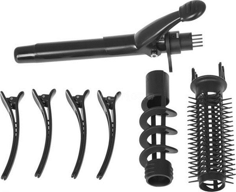Насадки у комплекті:випрямляч, щітка, щипці, гофре, спіральна, зажим для волосся